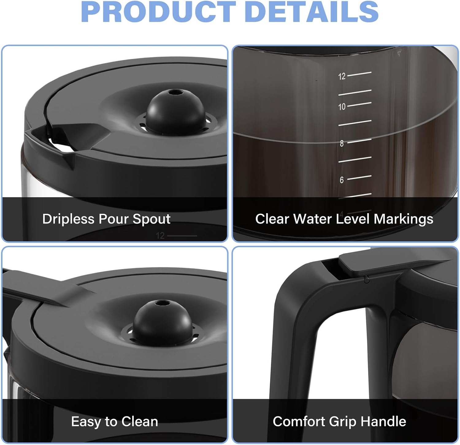 Upgraded 12-Cups Alternative Glass Espresso Carafe appropriate with Keurig Ok-Duo 5100 Single Serve Ok-Cup Pod & Carafe Espresso Maker Solely (NOT Match Ok-Duo 5000 Necessities Mannequin)