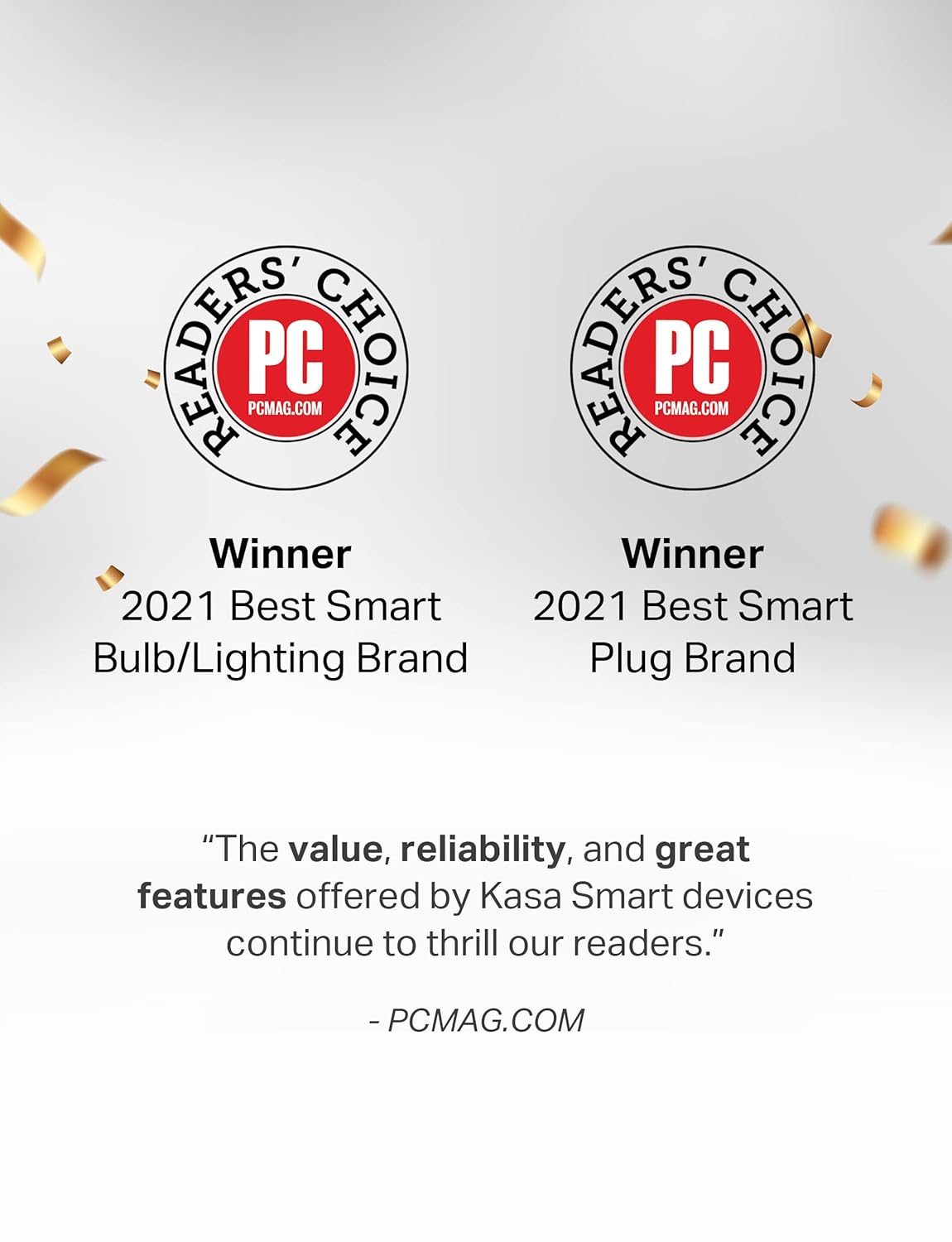 Setting up your Kasa Smart Plug is a breeze. Simply plug it into an available outlet, connect to your 2.4GHz Wi-Fi network, and follow a few taps in the Kasa app. In less than five minutes, you’ll have full remote control over your devices, whether you’re lounging on the couch or thousands of miles away. Plus, with UL certification and a two-year warranty, you can trust Kasa’s proven track record of quality—which has already garnered over six million users worldwide and earned the PCMag Reader’s Choice award in 2020.