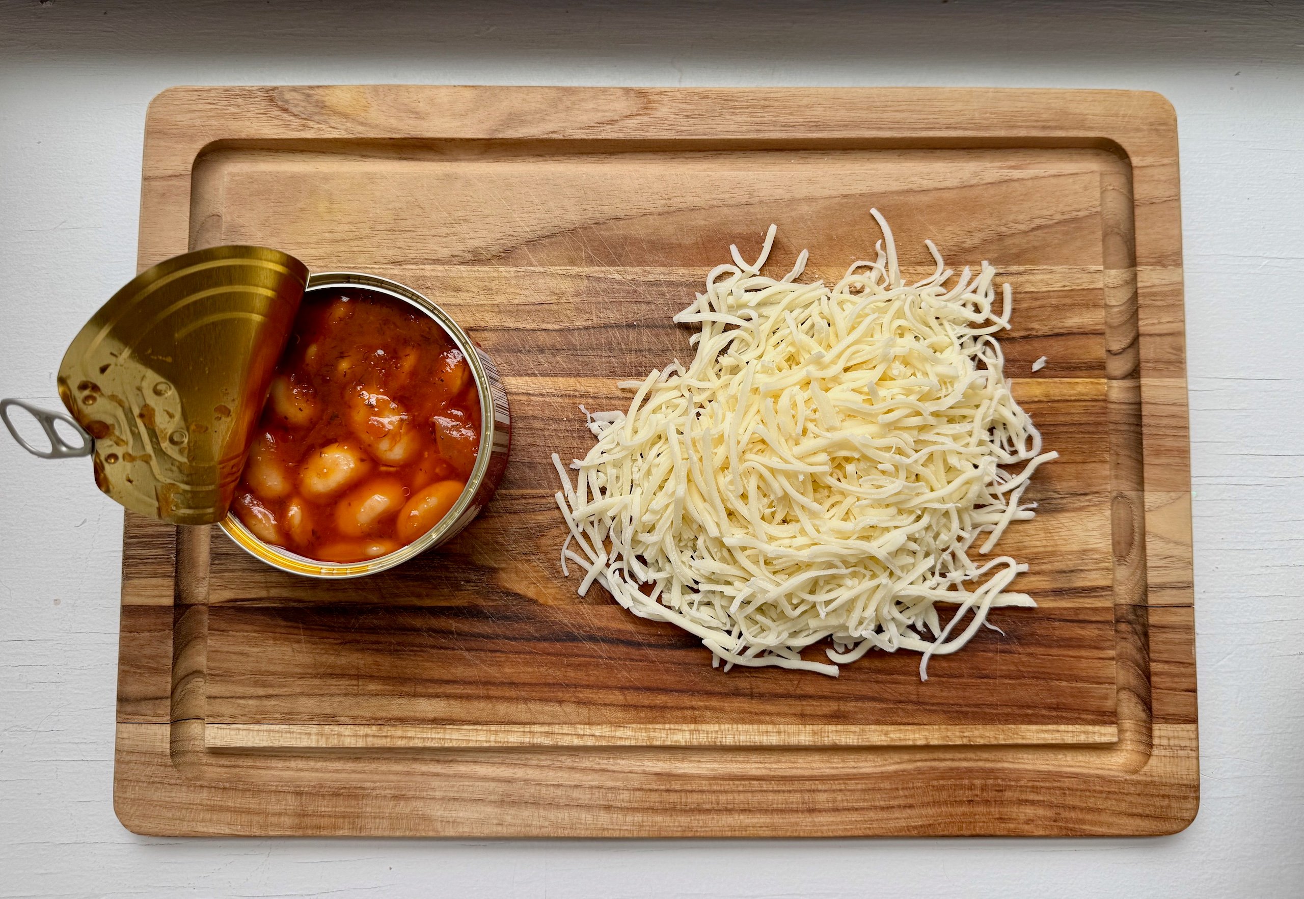 1 can of white or gigante beans in tomato sauce (I used these, however any model works! Simply be sure it’s savory sauce — not candy, like Heinz baked beans)