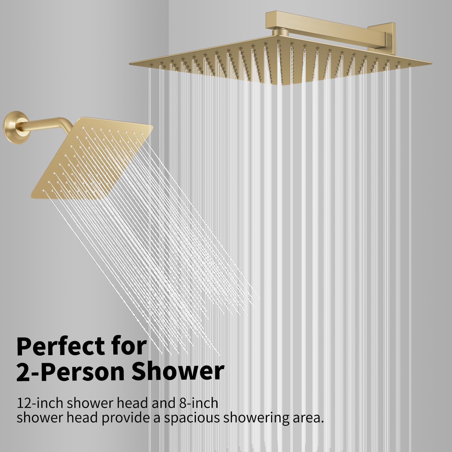 Dual Top Rainfall Shower Head Design System: The 12 & 8 inches rain shower thanks to the ultra-thin design , even in a low water pressure environment, when the water flows out after being squeezed through the ultra-small space, it can also achieve a high water pressure rain shower experience.Two top shower heads provide you with two different shower experiences, allowing you to relax and enjoy your shower to the fullest.