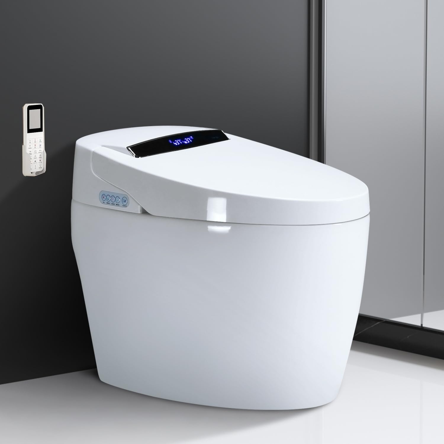 Multifunctional Design: Our smart toilet adopts a multifunctional and user-friendly design–LED display, Side press panel, Intelligent remote contro, Nozzle self-cleaning, Silent descent, Automatic flushing, Night lighting, double filtration, Seat ring induction, Temperature heating, Live water filtration, Water potential regulation, temperature regulation.
