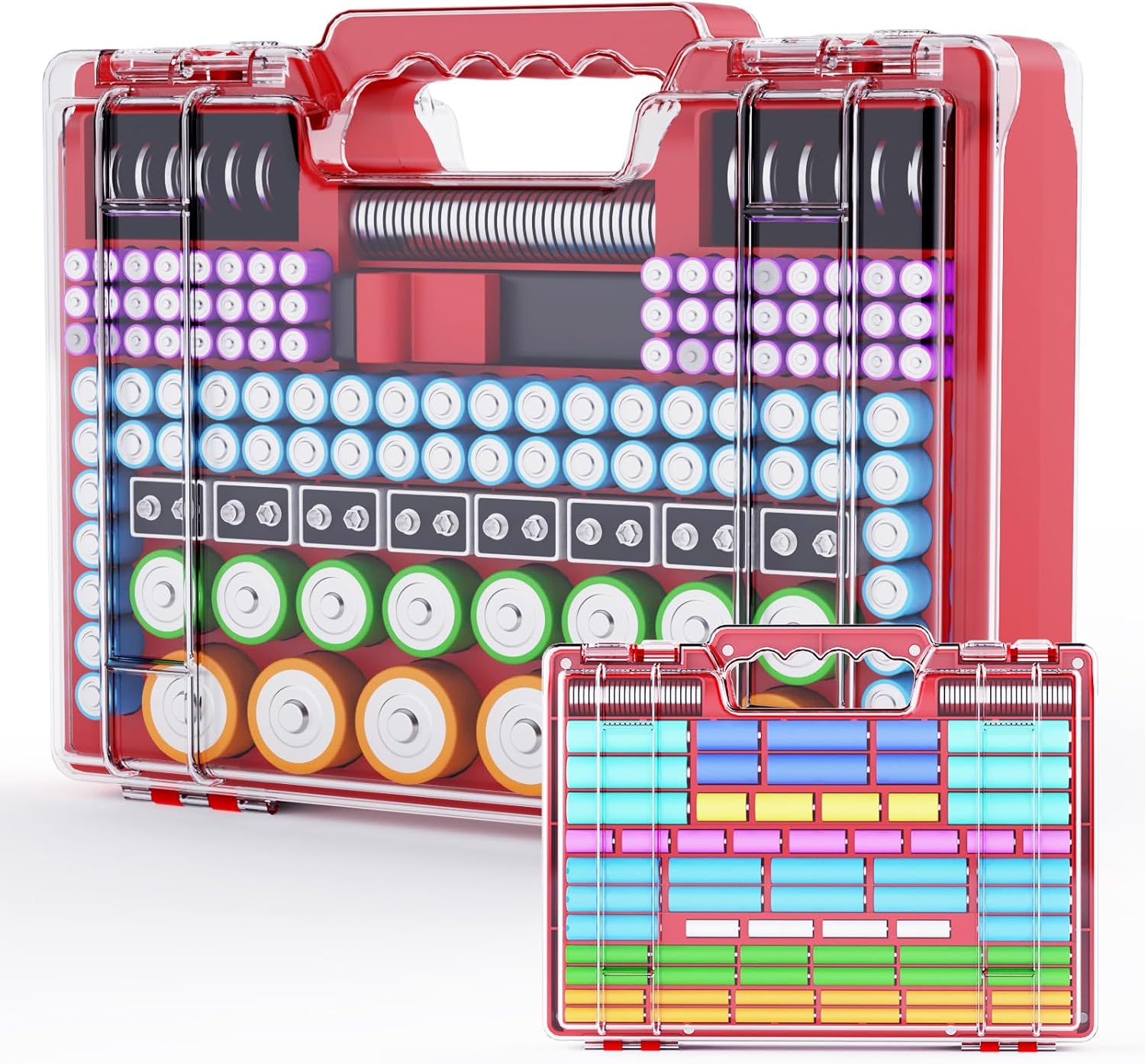 Large Capacity Battery Compartment – Battery organizer storage and protects a large number of batteries! Holds 58 AA, 52 AAA, 12*AAAA, 6*D, 8*C, 10*CR2, 6*CR123, 10*4LR44, 6*23A, 6*18650, and 50 button cell batteries. Great for organizing and storing any battery pack.