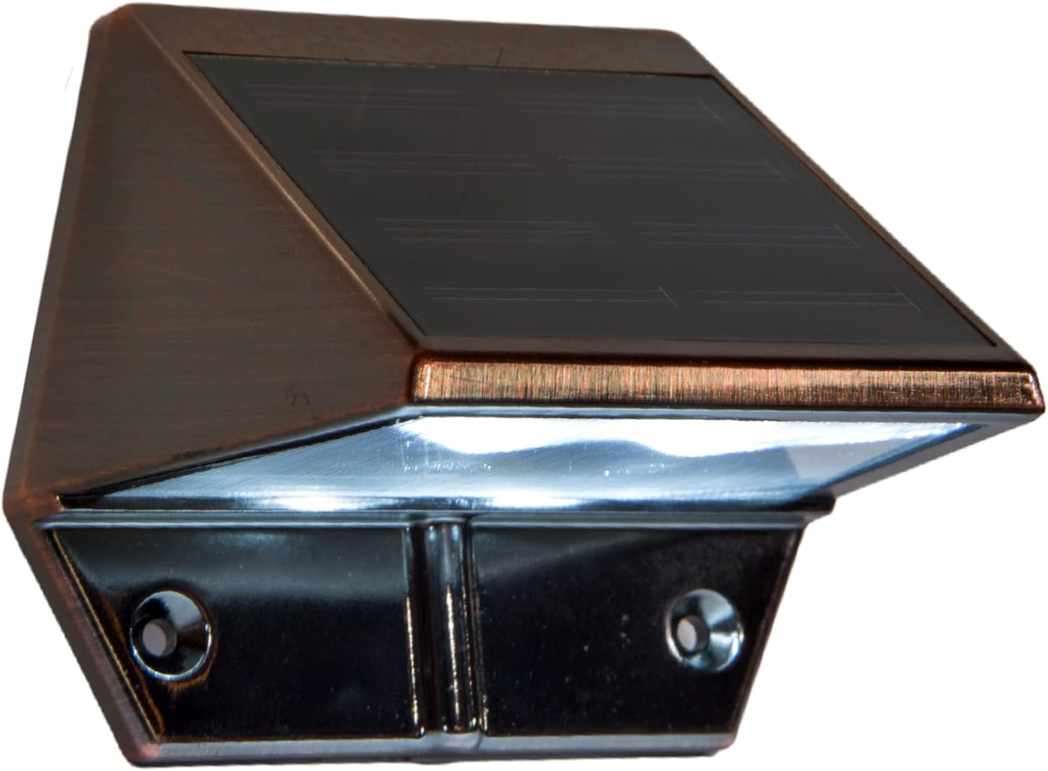 High-Performance solar lights – stays lit for up to 12 hours Lights up automatically every night / auto – off switch High-output surface mount LED technology for brilliant white light 1 long-life AA Ni-MH rechargeable battery included Antique Electroplated Copper finish. Quick and easy Do It Yourself installation 12 Lumens / 4500-5500 Kelvin Antique Electroplated Copper finish