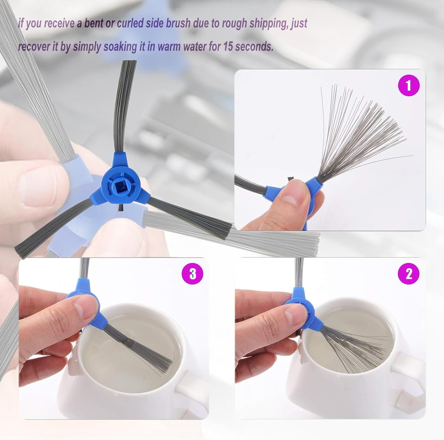 【HIGH PERFORMANCE SIDE BRUSHES】- Replacement Eufy Side Brushes is made of high quality and durable ABS, Thermoplastics Elastomer and Nylon Brush Hair, Brush Hair Length: 55mm, Extra-long robot vacuum brush replacement effectively cleans corners and wall edges. Eufy robot vacuum replacement parts fit like a glove and will be able to clean impurities and pets hair on the floor in corners and edges efectively.
