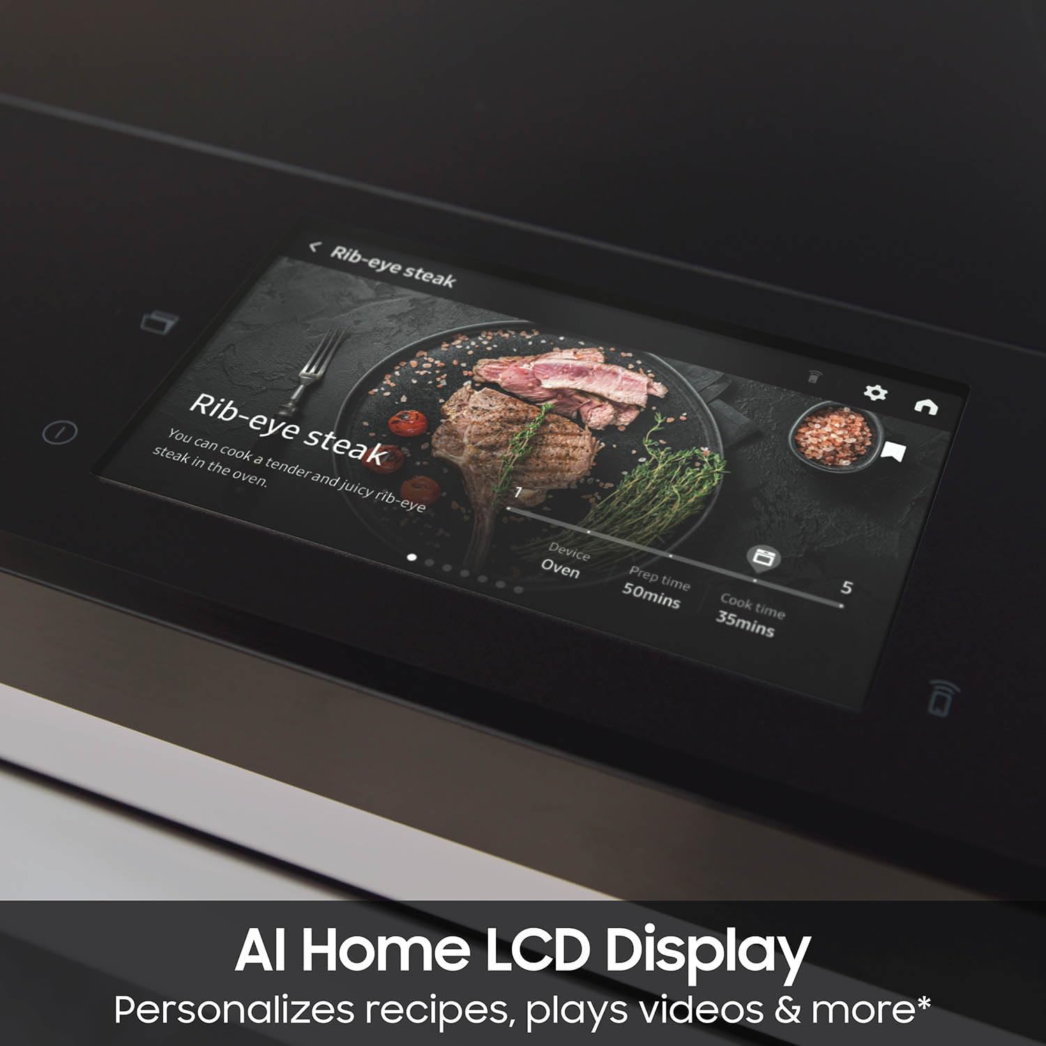 Samsung’s AI induction range features a 7″ AI Home LCD Display that provides personalized recipe recommendations, allows you to search for and follow video recipes, and gives you access to your favorite apps so you can see who’s at your door through your video doorbell and more. You can monitor your food closely with an integrated Smart Oven Camera and set the tone of your kitchen with built-in Ambient Edge Lighting.