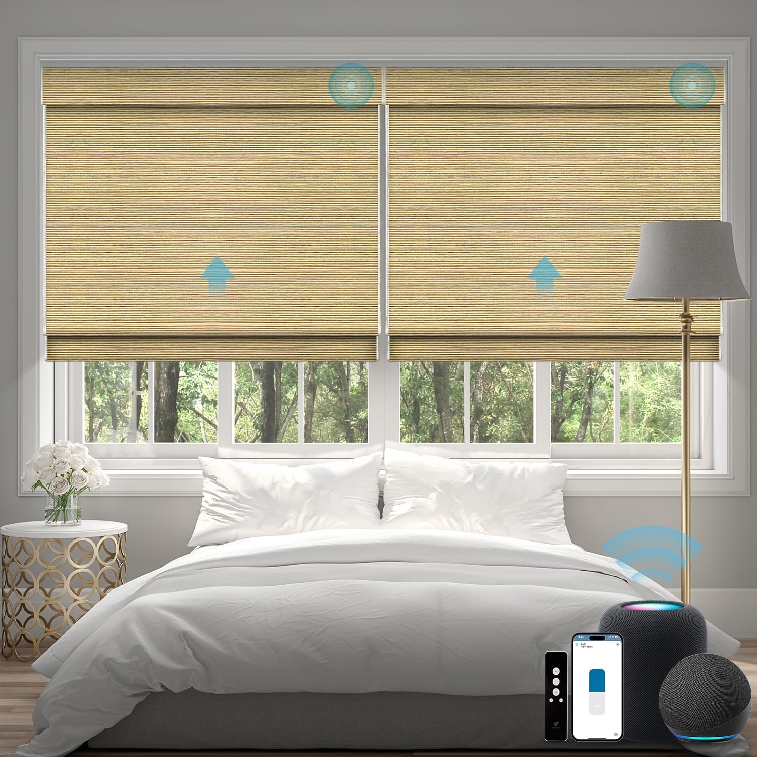Functions: Woven wood Roman blinds feature a traditional drawstring design with a handmade natural grass mat to add a touch of elegance to your room. They are not only great choices for window decoration but also powerful and functional. Various shading effect linings are attached to the back of the straw mat, preventing light from entering the room and providing excellent blackout and privacy protection. Equipped with a high-capacity motor, it can stand for half a year after a full charge.