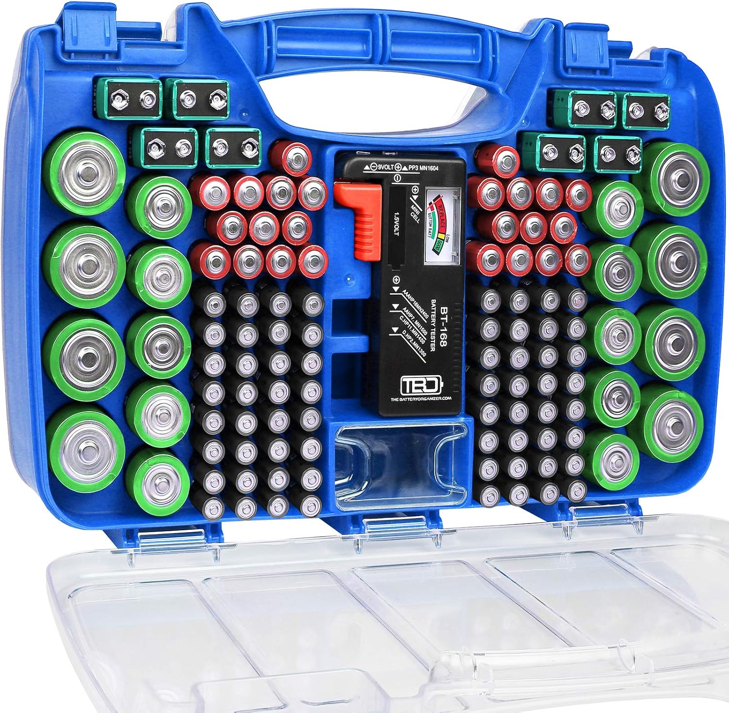 Battery Organizer, Battery Organizer Storage Case with Tester BT-168, Waterproof Battery Holder Box Holds, Battery Case Organizer 60+ AA AAA C D 9V Batteries (Batteries are Not Included)